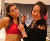 She’s your OC girl if you’ve got a big girl’s night out, photo shoot, tv gig or need any kind of makeup makeover. OC’s own CoachGlitter, aka Tiffany Lee Bymaster is a professional makeup artist, who works in film, TV, video, runway, editorial, runway, commercial and corporate. And she’s an airbrush expert if you need some “natural” glow. Here’s a look at Tiffany in action with her clients.