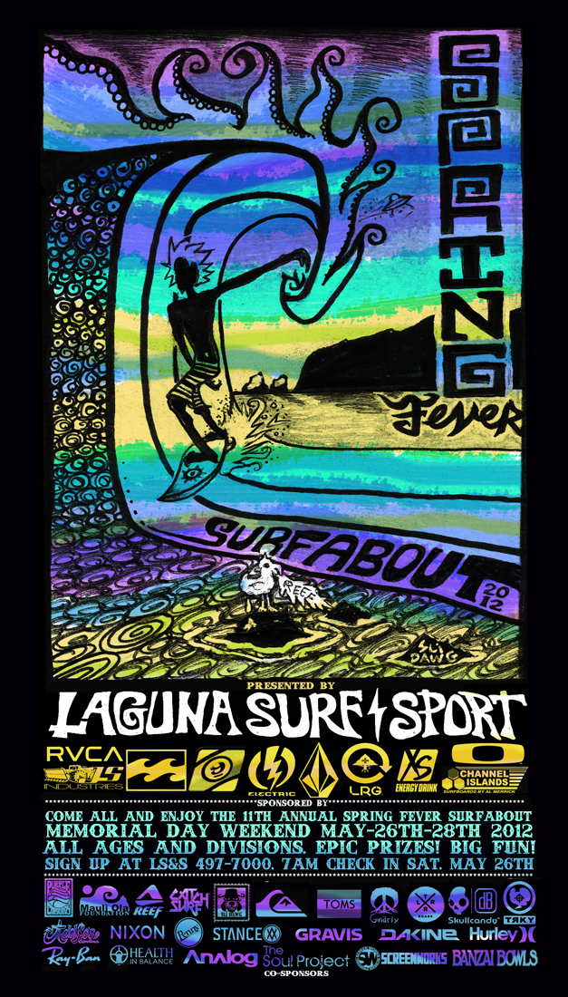 If surf’s your scene and you’re open this weekend Saturday May 26-28, check out the 11th Annual Spring Fever Surfabout in Laguna Beach. Big fun, epic prizes. Bring the groms and have a good time. All will gather at the top of the Thalia St. The event is put on by Laguna Surf and Sport, specifically Jason “Watto” Watson and Steven “SLi Dawg” Chew. I’ve had a chance to get to know them both and dig their passion for the waves, for Laguna and showing young groms how it’s done. This contest is tradition in the Laguna community. The consistency of the winter swells at “Thalia Reef” makes it one of the most worthy spots in town. See you there? I plan to bring my boogie-board kid who has his eye on the waves and heart begging for a real board.